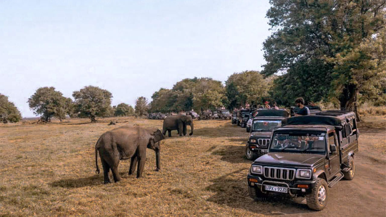 这个三小时野生动植物园带您直达Minnerriya 国家公园。从五月到十月是享受的最好季节(旱季)一处聚集超过150 头大象的景象。还有大象外机会看见在灌木丛还有机会在灌木丛土地,森林和公园的其他地区看到许多种类的哺乳动物,鸟类,爬行动物和两栖动物。