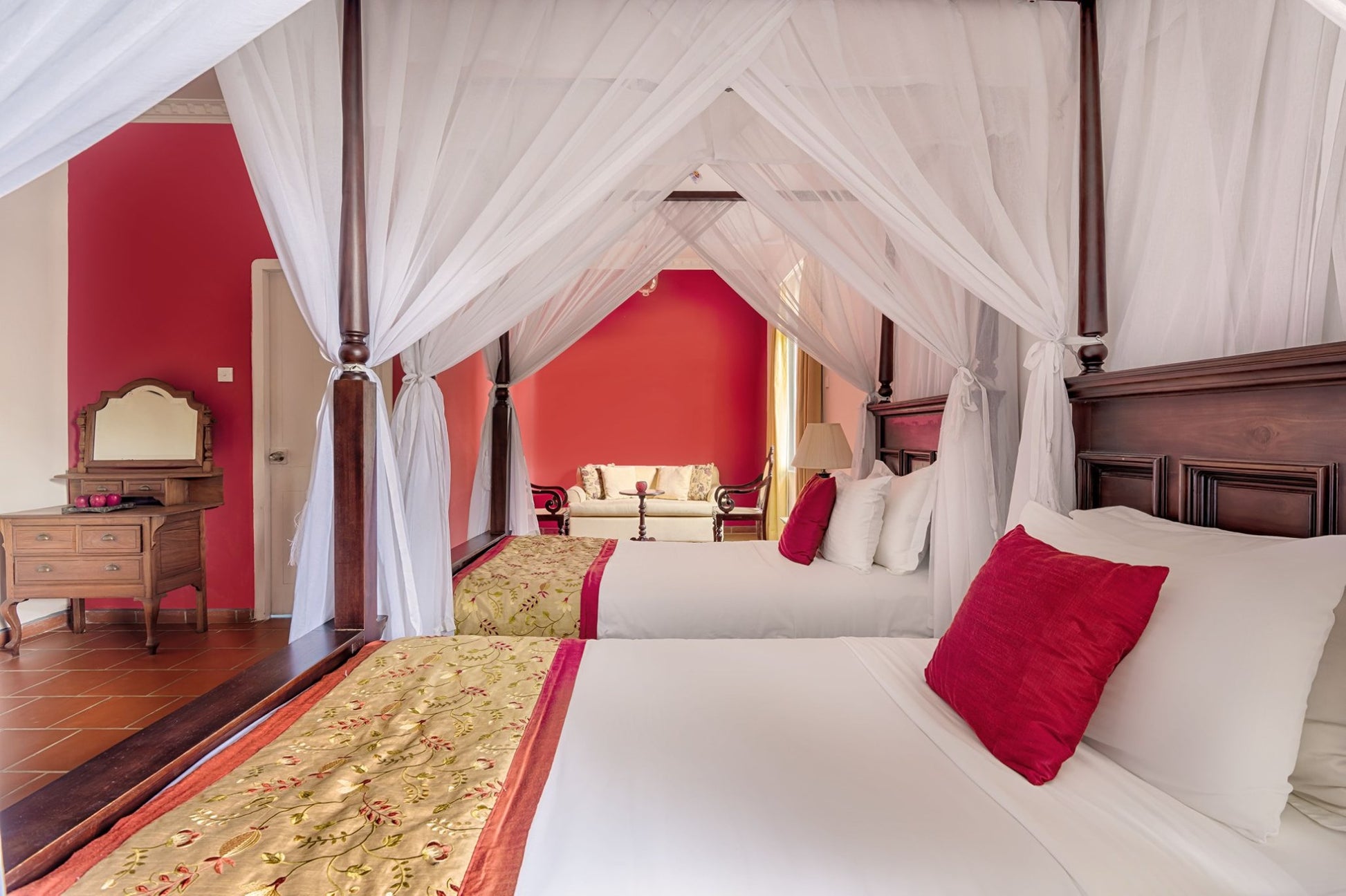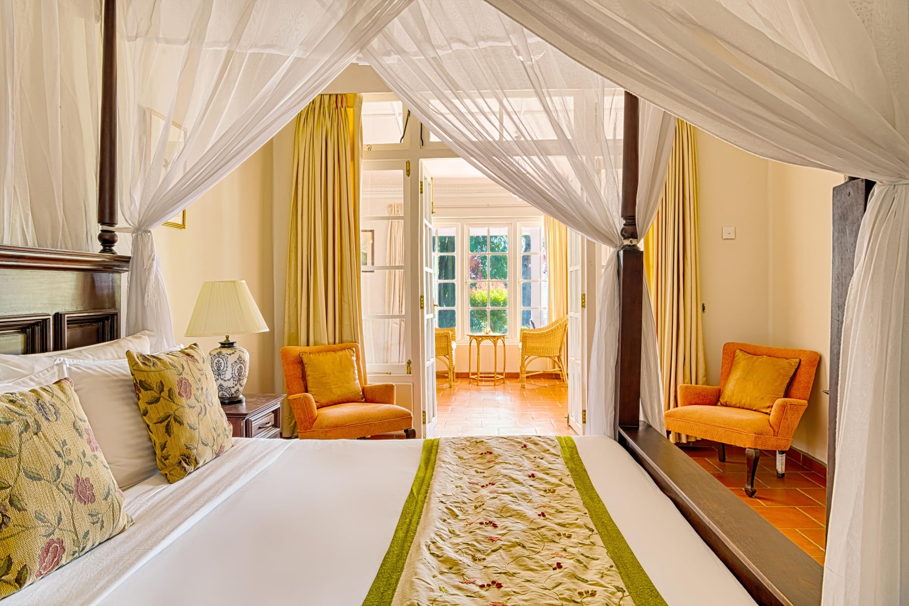 The bungalow features charming rooms furnished with classic touches and modern comfort. Each room includes cozy bedding, private bathrooms, and tasteful interiors reflecting colonial elegance, along with views of gardens or tea fields.